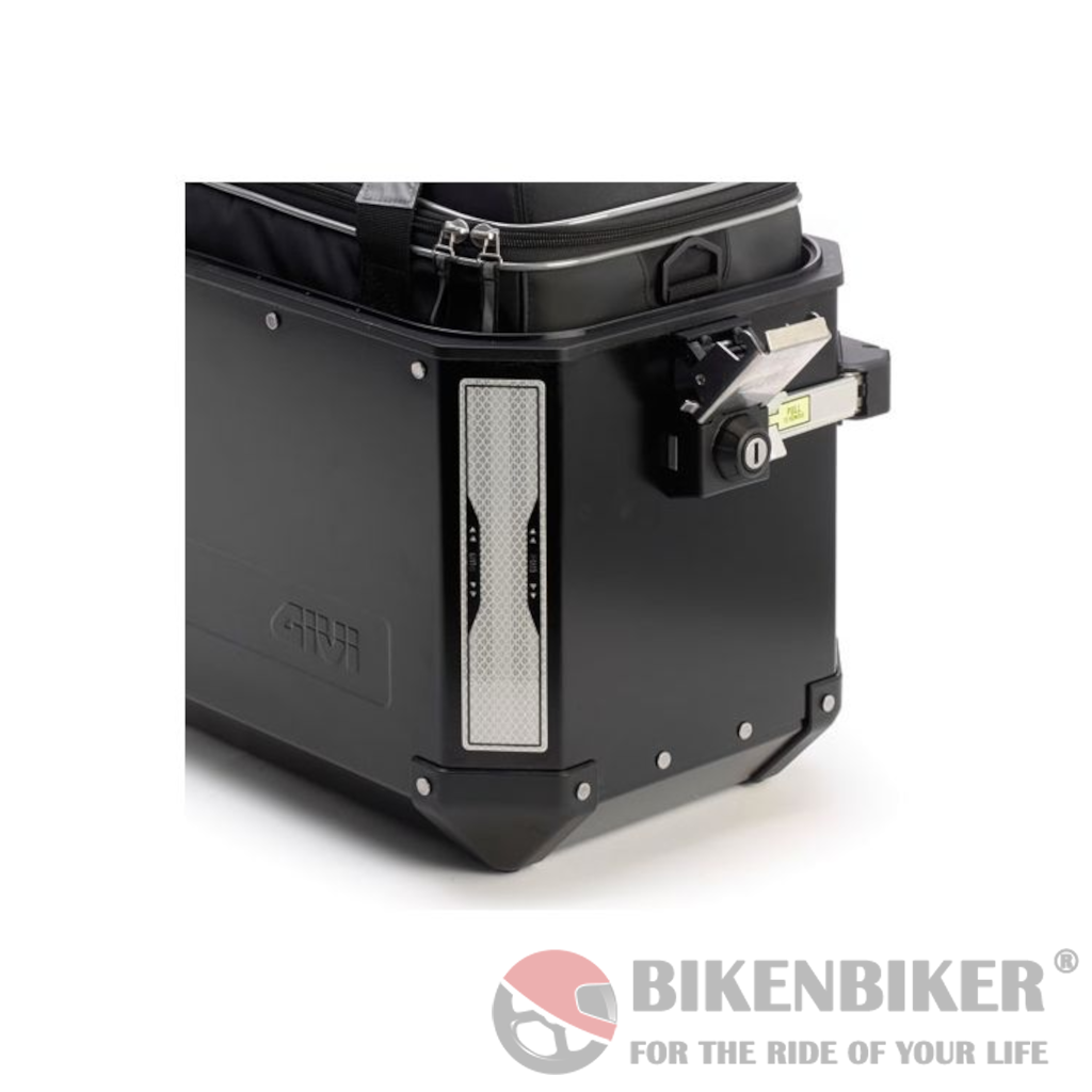 Givi E145. Pair of reflective stickers suitable for the Trekker Outback cases: Measurements: 205mm long x 45 mm wide Other Details