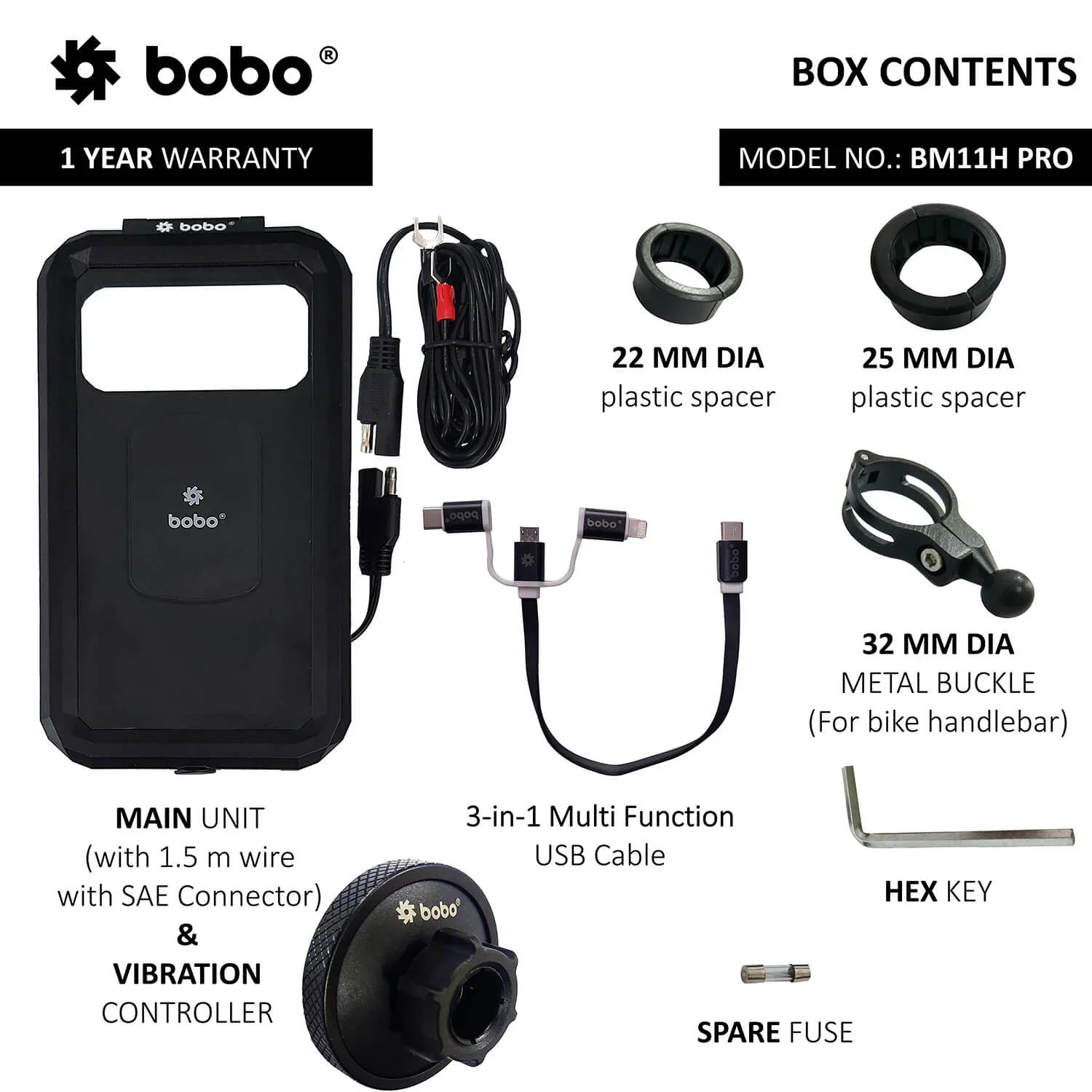 PRO Fully Waterproof Bike Phone Holder with Vibration Controller (with Fast 15W Wireless Charger & USB-C Input/Output Port) Motorcycle Mobile Mount - BOBO - BB-BM-011-111001