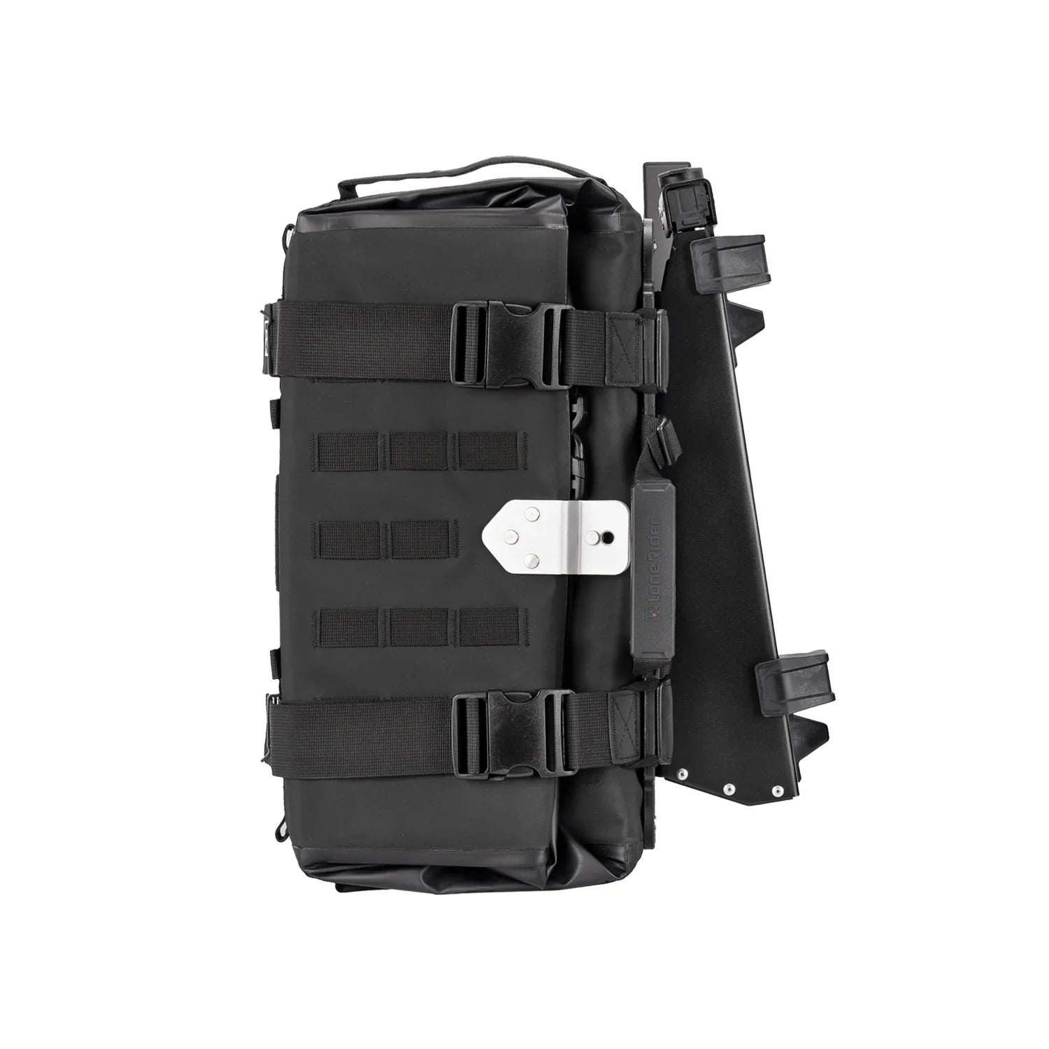 The Rackless MotoBags are equipped with the old military attachment system on the front & back and top & bottom. Here you can attach our smaller bags (MiniBags, MicroBags, TallBags, Bottle Holders) or your own gear that is M.O.L.L.E. compatible.