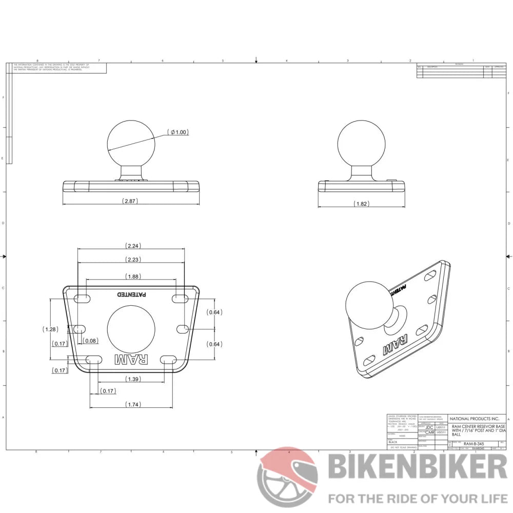 - The RAM-B-345U brake/clutch reservoir cover base fits cleanly over your existing reservoir cover with the 1" ball centred.