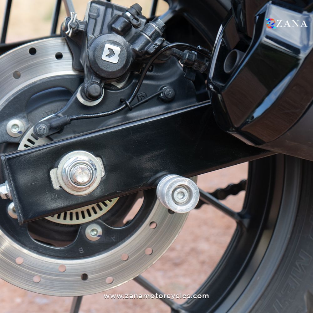 - On the right-hand side, the slider material is not given to prevent accidental damage to exhaust on hard suspension travel.