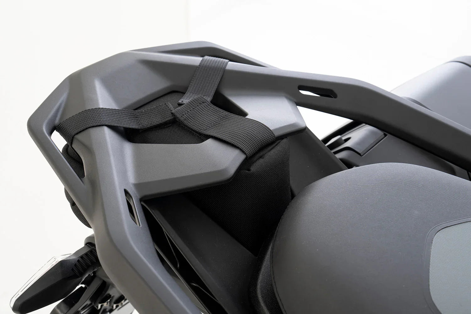 Perfectly tailor-made, this high-quality pannier is located in the gap below the luggage rack to be within reach and optimally utilises the free space. The bag made from the sustainable CORDURA® TrueLock™ has a compartment with a water-repellent and non-slip zip that can even be opened with gloves. It is especially ideal for small items, which need to be grabbed quickly. For example, the first aid kit, tools etc. can easily be stored.