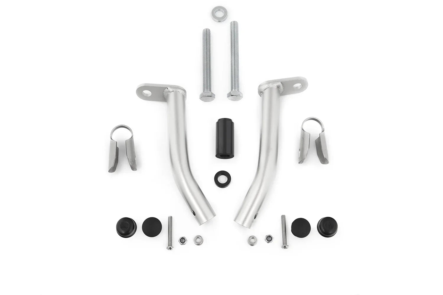 Precisely formed on CNC tube bending machines and cleanly welded, we manufacture the reinforcement from precision stainless steel tube with a pipe diameter of 25 mm. The surfaces are bead blasted and electropolished. Thus, the reinforcement integrates discreetly and perfectly into the design of the original engine guard.