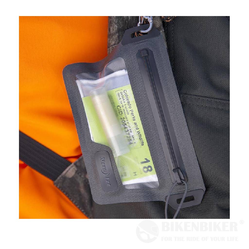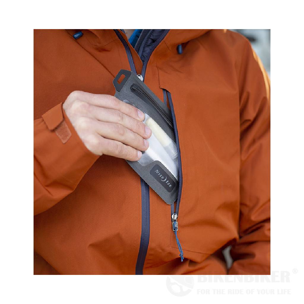 The unique patented TRU Zip waterproof zipper developed by Nite Ize sets the RunOff bags apart from anything else on the market. The simple slide-to-secure zipper is easy to use and features a waterproof and dustproof seal that's snag-proof and creates a confident closure you can feel. Its toothless design is silent, glides smoothly, and offers maximum reliability whether it's left out in the rain or fully submerged.