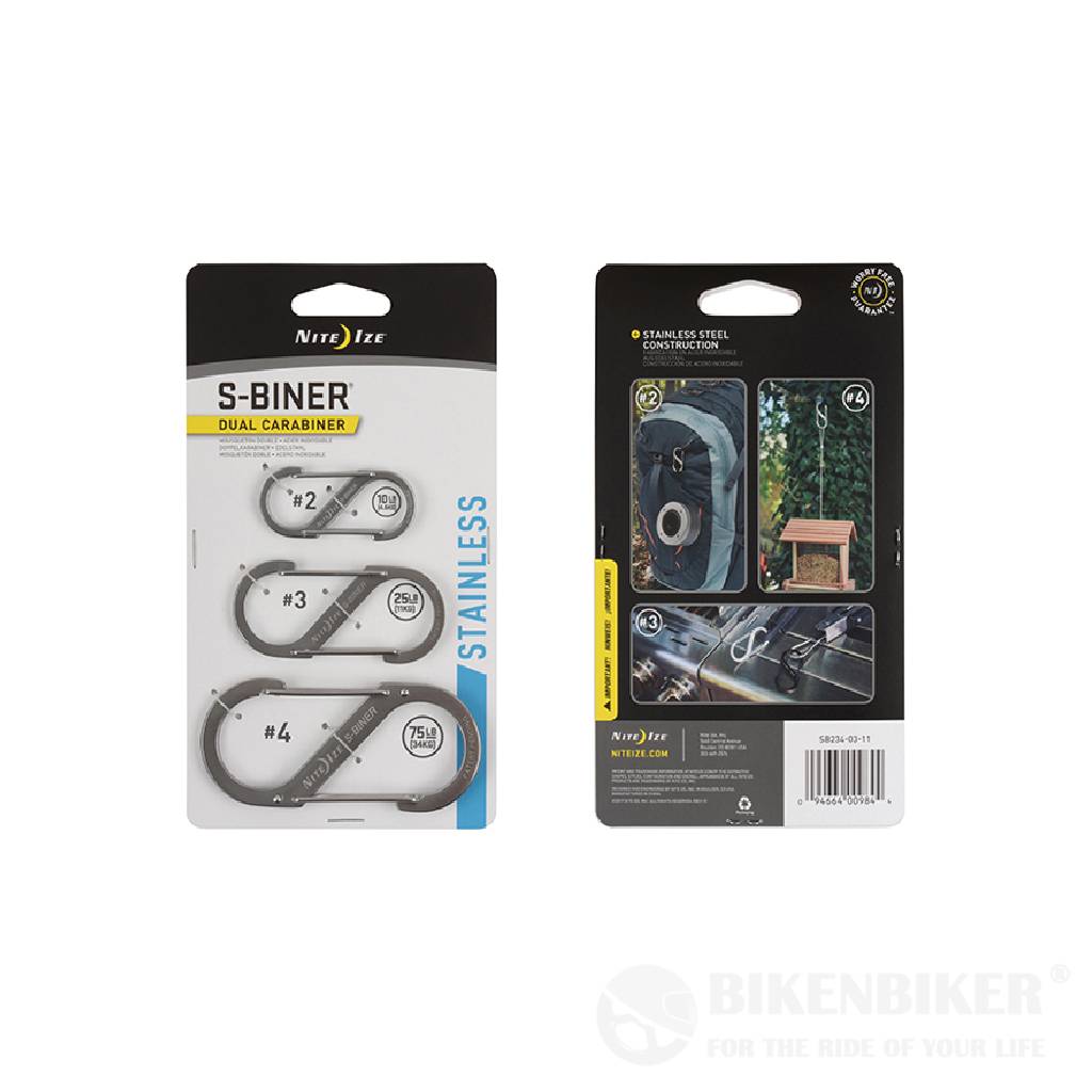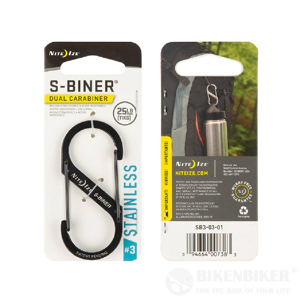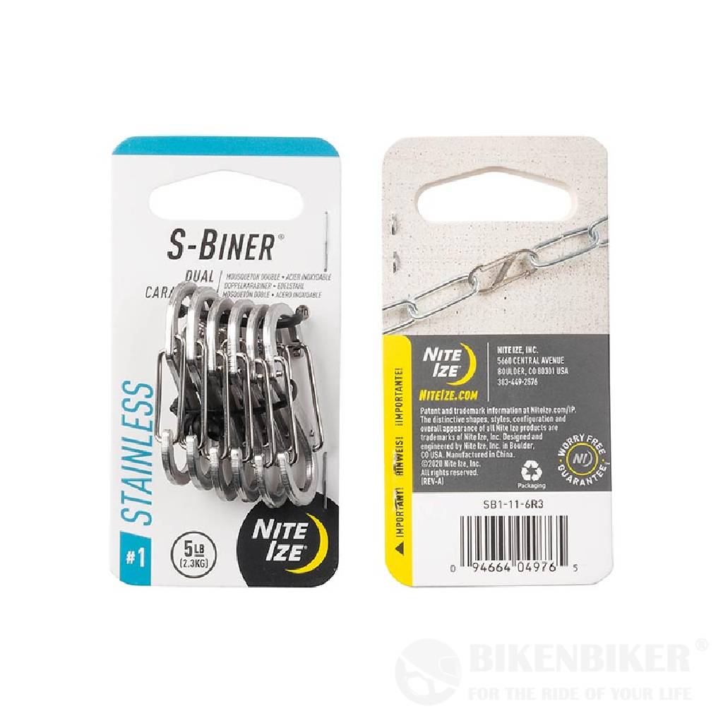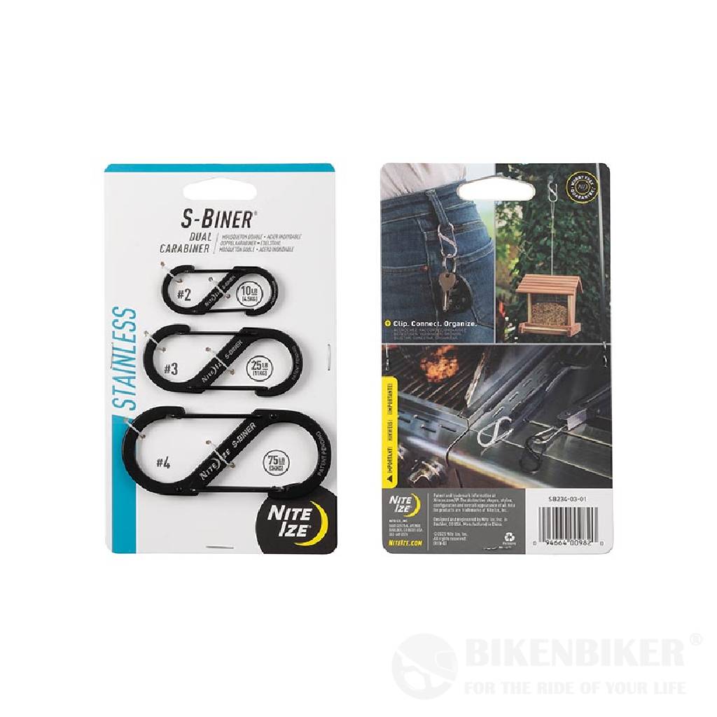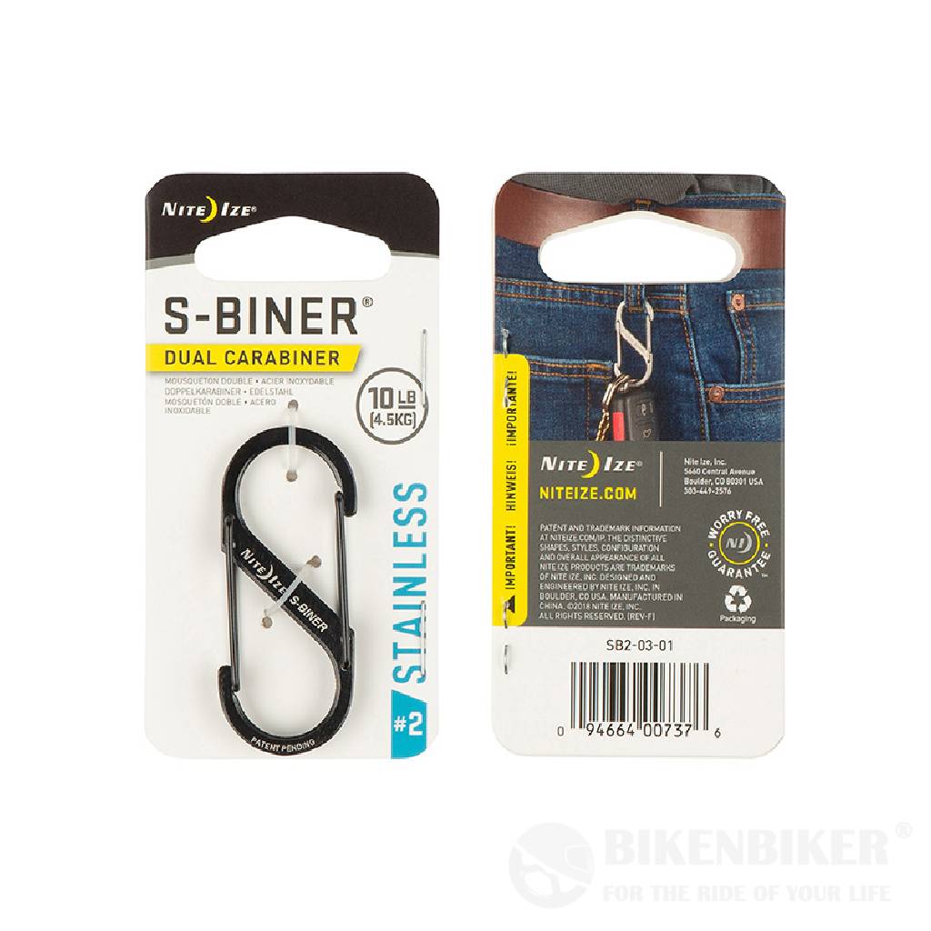 The iconic S-Biner design allows quick and easy attachment using its unique double-gated design. The high-quality, durable stainless steel body is available in a variety of sizes that are individually weight rated, creating a perfect way to hold, secure, and connect everything from keys to water bottles to gear.