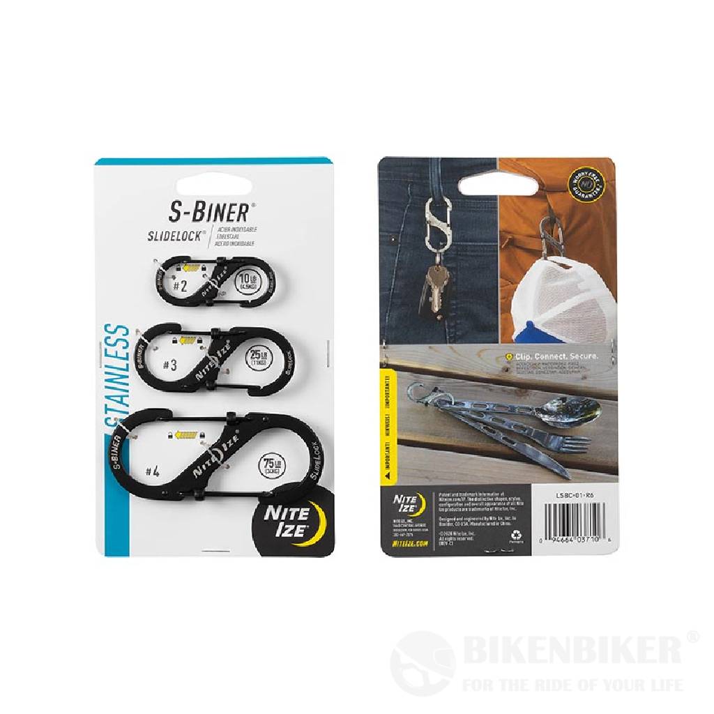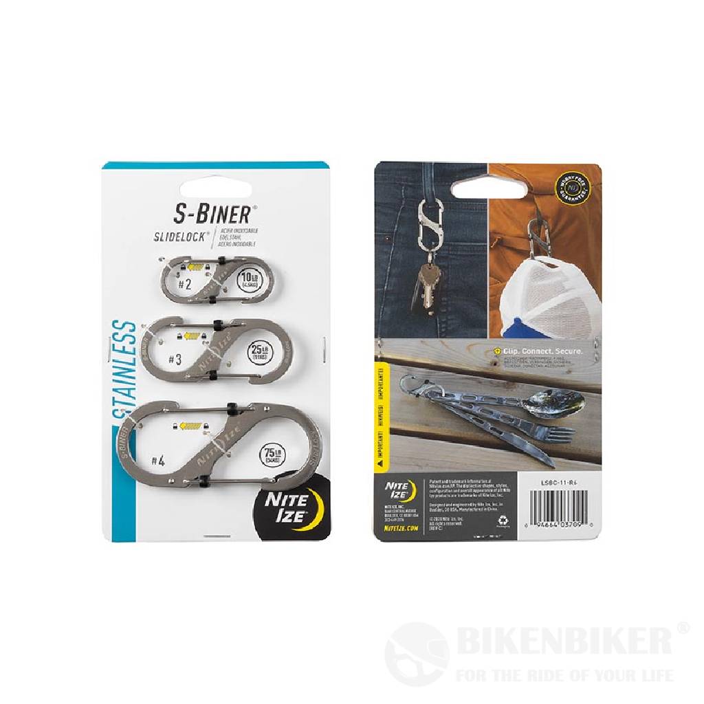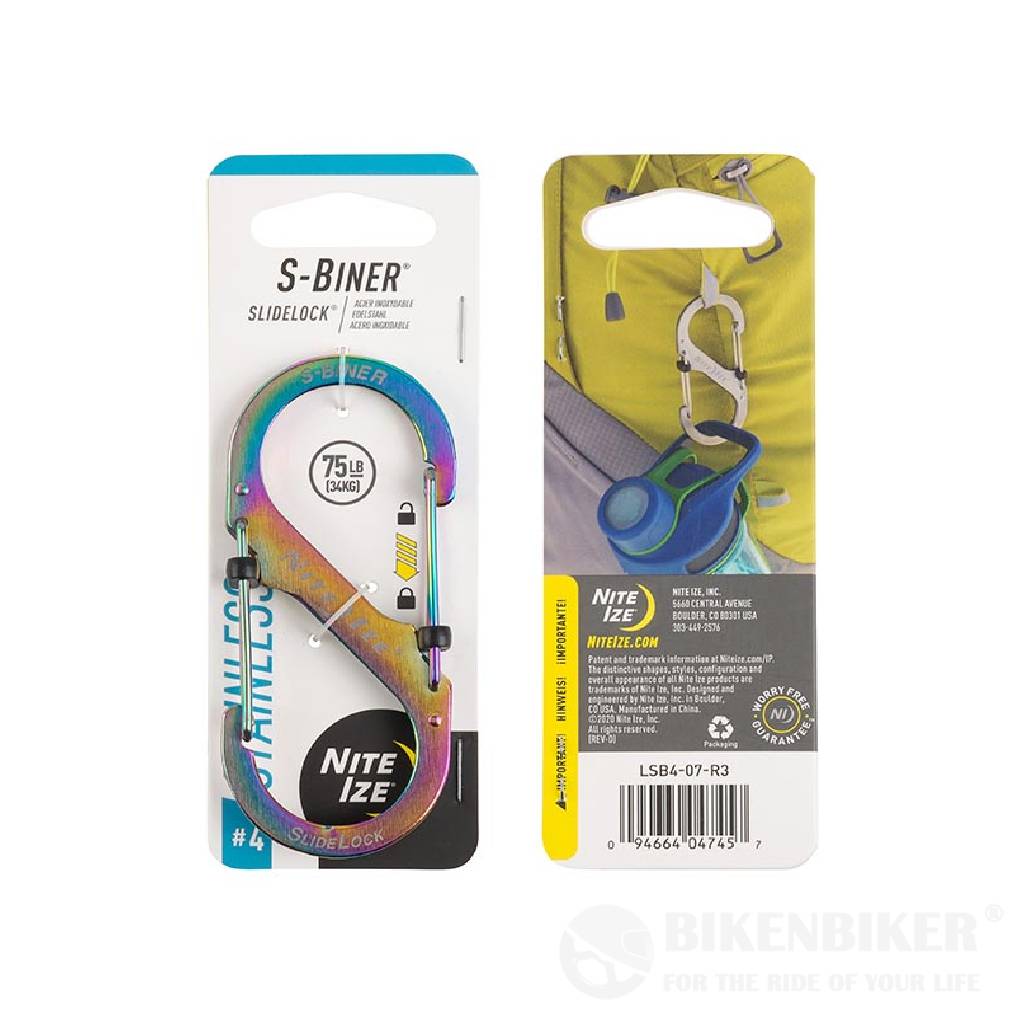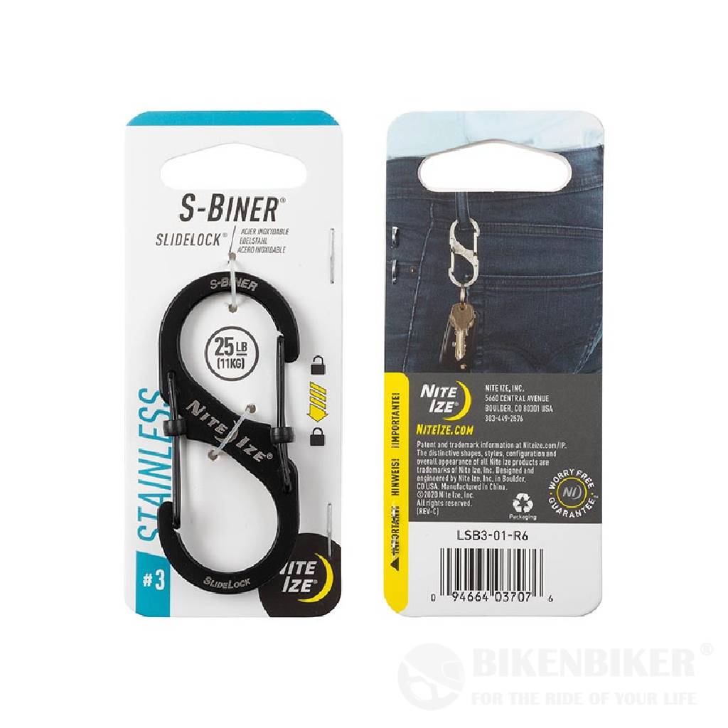 Organize, connect, carry, and keep your valuables extra secure with the S-Biner SlideLock Double-Gated Carabiner. Made of high quality stainless steel, the S-Biner SlideLock features two simple, innovative plastic sliders that slide into place to keep the gates securely closed. Each gate can be locked independently for convenient access. The S-Biner gates will stay firmly locked until you choose to unlock them, allowing for simple and secure linking, attaching, and carrying. Our S-Biner SlideLocks are available in three sizes (#2, #3, and #4) for small-to-larger tasks.