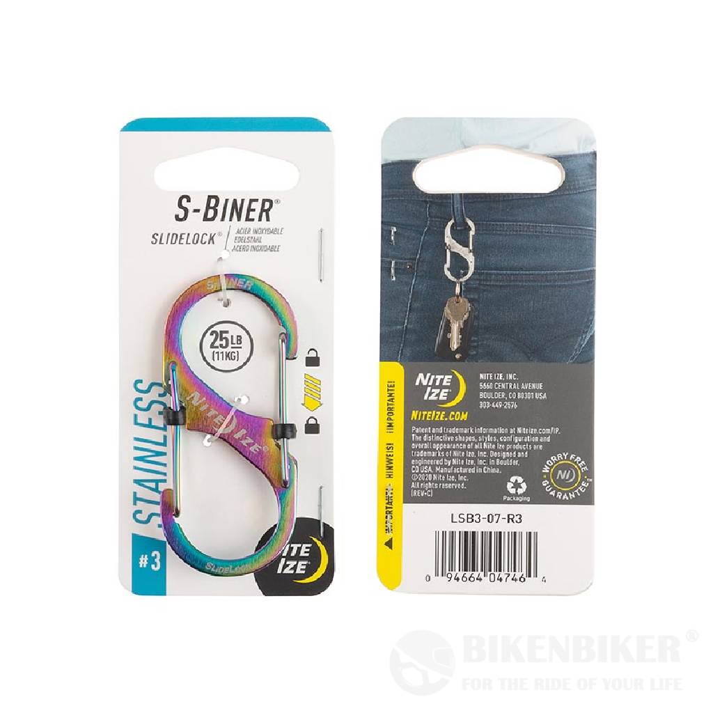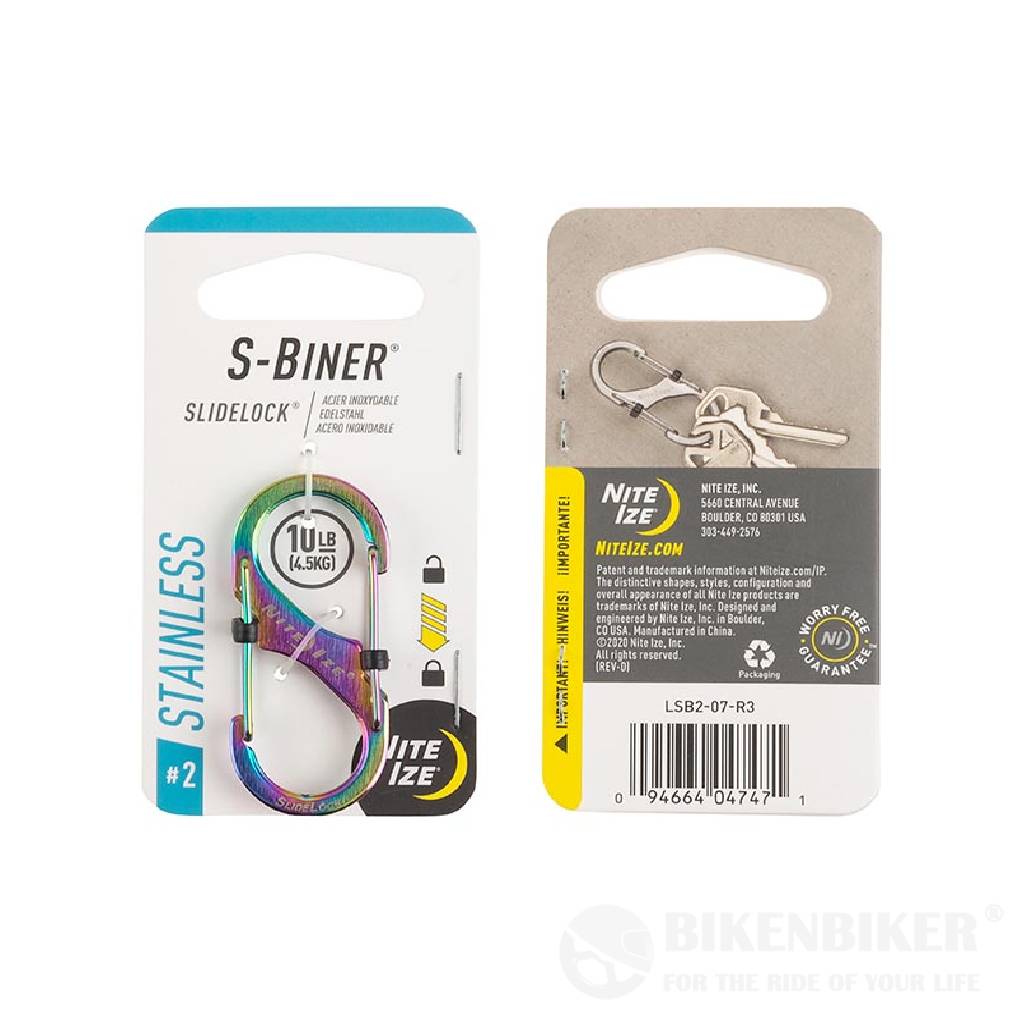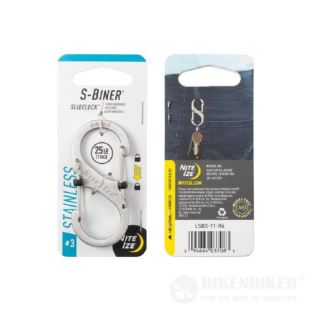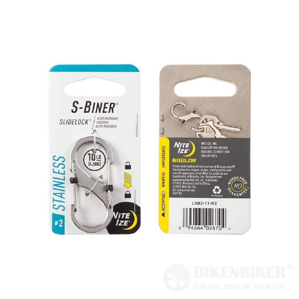 Organize, connect, carry, and keep your valuables extra secure with the S-Biner SlideLock Double-Gated Carabiner. Made of high quality stainless steel, the S-Biner SlideLock features two simple, innovative plastic sliders that slide into place to keep the gates securely closed. Each gate can be locked independently for convenient access. The S-Biner gates will stay firmly locked until you choose to unlock them, allowing for simple and secure linking, attaching, and carrying. Our S-Biner SlideLocks are available in three sizes (#2, #3, and #4) for small-to-larger tasks.