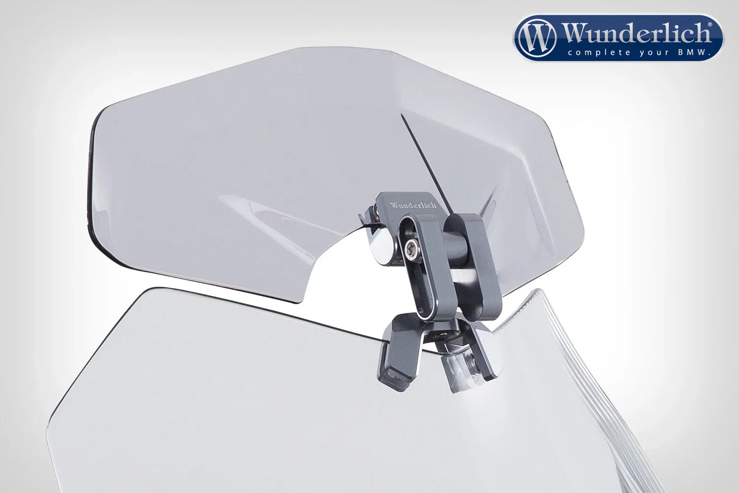 The main problem with any original screen is that the upper edge cannot be adjusted to cater to individual needs, and to eliminate buffeting and turbulence. We took the principle of screen add-ons, and significantly improved upon it.
