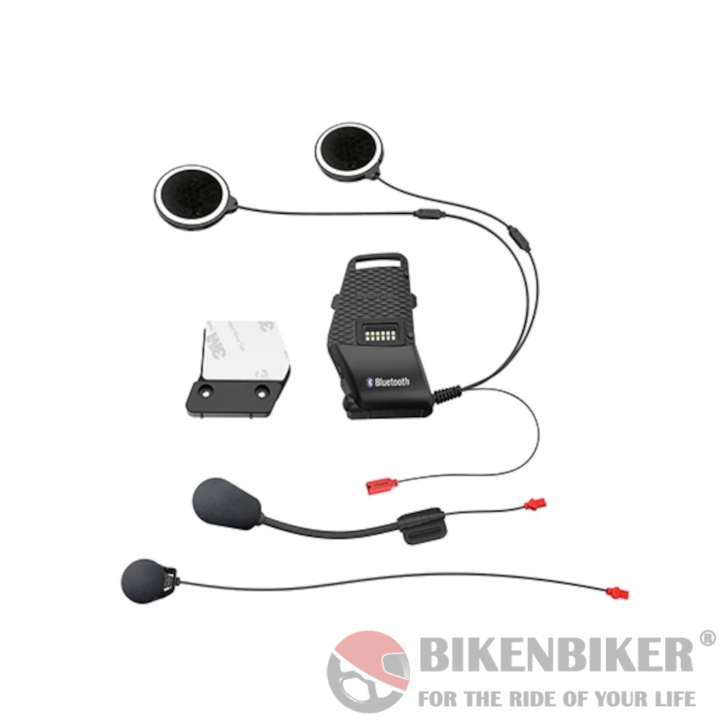 Clamp kit for the 10S Bluetooth motorcycle communication system. Includes fasteners, speaker pads, microphone sponges, speakers and microphones, and more.