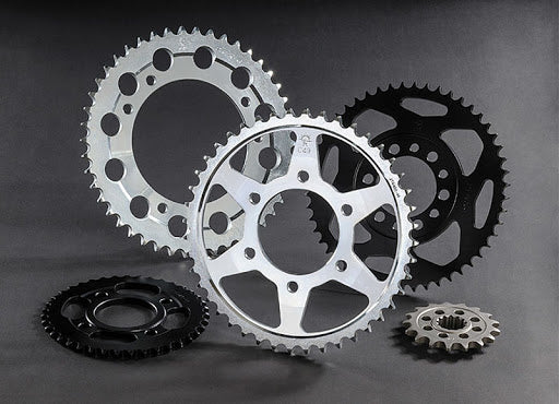 JT sprockets are made using only the best available materials. Aviation-grade 7075-T6 aluminium alloy for lightweight competition sprockets, SCM420 chromoly steel alloy for front sprockets, and we are the only sprocket manufacturer using the ultra-durable high carbon C49 steel for rear sprockets.