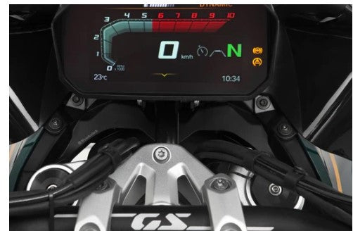 Are you looking for a convincingly tidy, high-quality cockpit for your GS? We recommend this Wunderlich cockpit cover. It closes the opening at the top end of the fork tunnel between the cockpit's instrument cluster and the fork bridge. It hides the view of the hydraulic lines for the front brake and clutch, as well as the electrical wiring for the instruments, the mudguard, and parts of the Telelever.