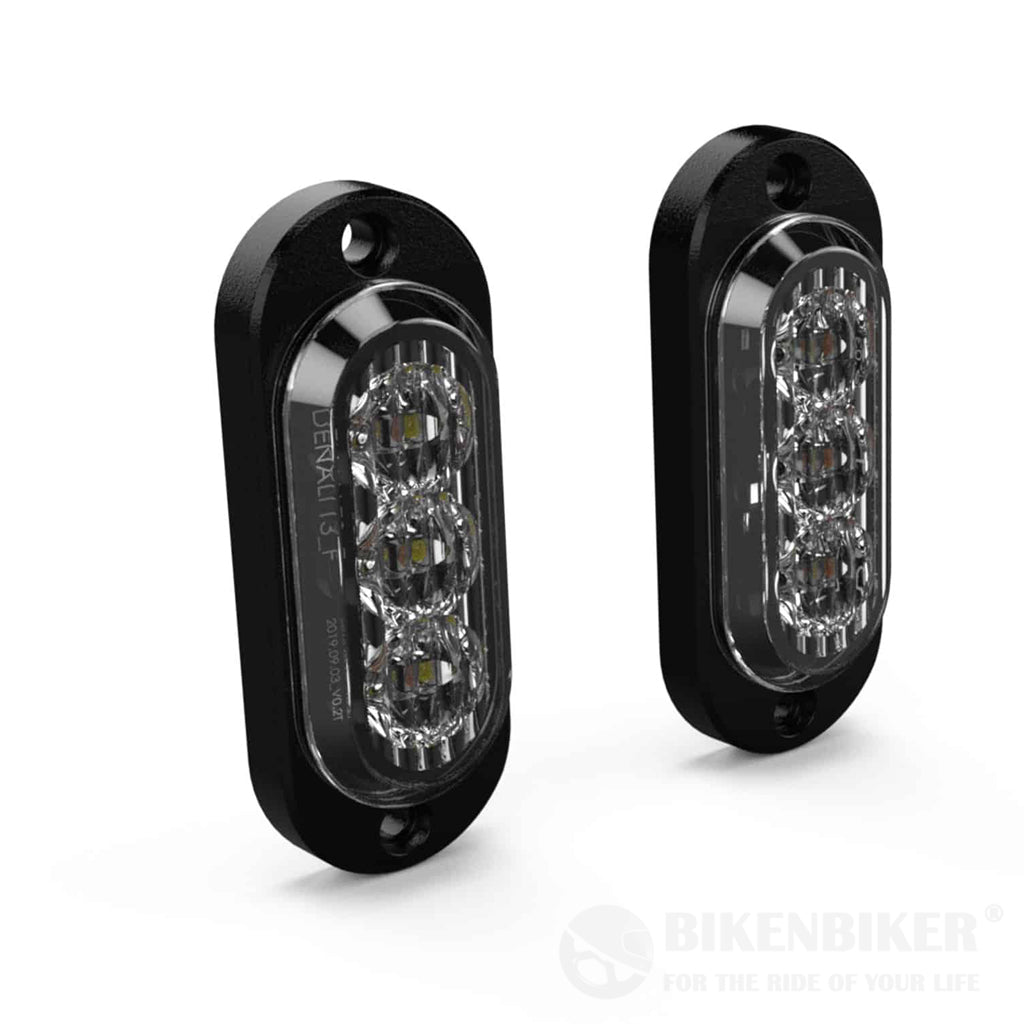 The front T3 turn signal pods feature super bright white running lights that switch to amber when your turn signal is activated, while the rear T3 signal pods feature super bright red LEDs for run and brake functionality that also switch to amber when your turn signal is activated. Unlike other switchback turn signals, the T3s feature two separate rows of high-power single-colour LEDs as opposed to weaker bi-colour LEDs. The result is a shockingly bright light pod that rivals the intensity of 10 watts LED driving lights.