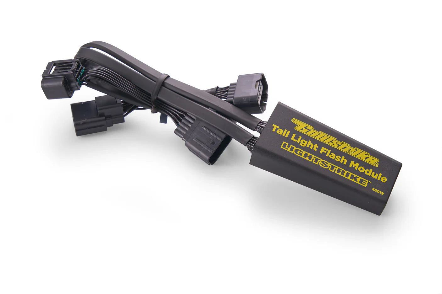 The Tail Light Flash Module with Lightstrike™ allows you to take control of your tail light functions by giving you the ability to add a variety of brake flashes, start-up modes and burst modes through our free Lightstrike™ smartphone app.