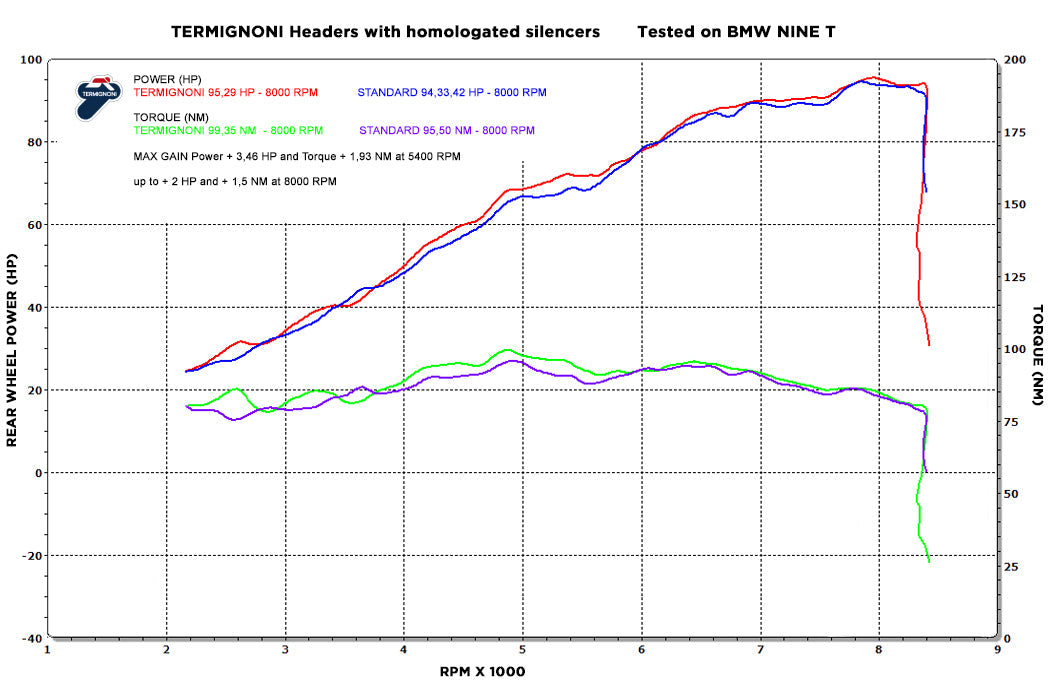 In terms of performance (when combined with BW1408040IIA) it offers an increase of power (+3.46 hp at 5,400 rpm) and torque (+1.93 Nm at 5,400 rpm).