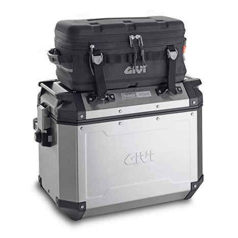 Trekker Outback side-case, with aluminium structure and profiles. Available in two different sizes: 37 ltr and 48 ltr. Equipped with the MONOKEY® CAM-SIDE fitting system in die-cast aluminium and inserts in reinforced technopolymer.