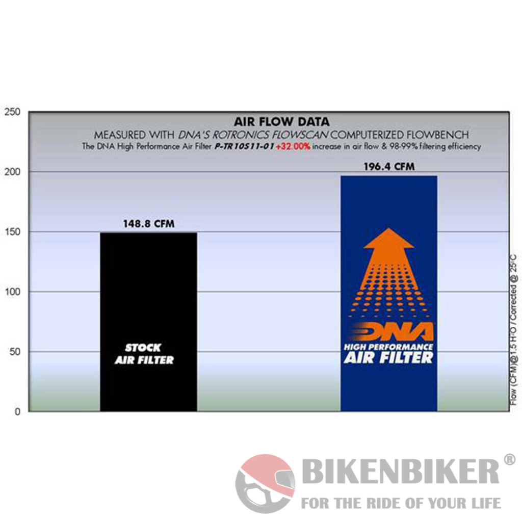 - The flow of this new DNA Fcd filter is very high, 32.00% more than the Triumph stock paper filter!