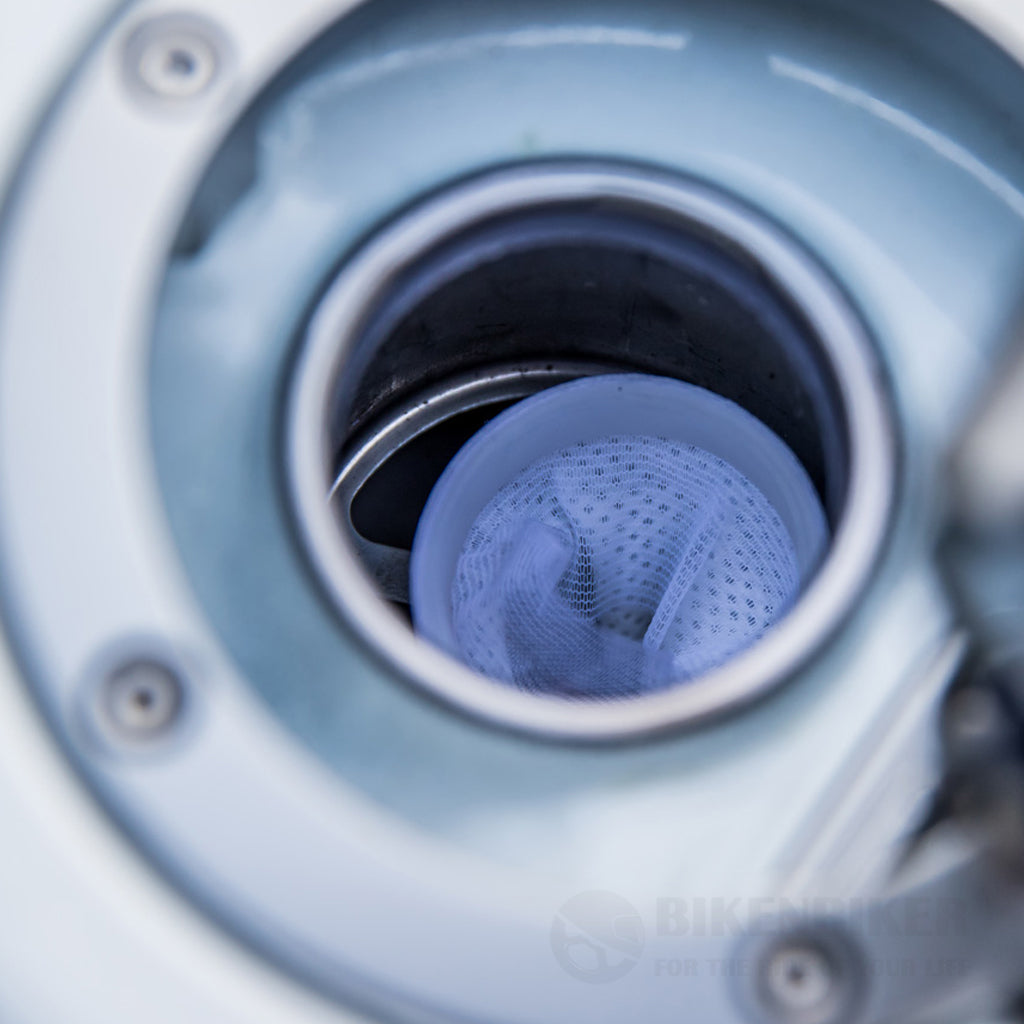 Special fuel neck pre-filter designed to be mounted inside the original fuel cap, simple drop-in easy to insert and extract, no further modifications or mountings, if present, remove the plastic cap at the bottom of the neck filler and instal the filter, that simple