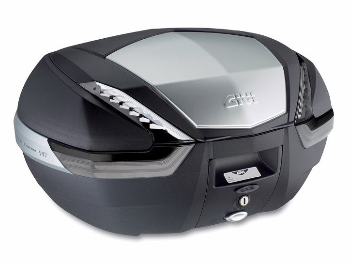 The Givi V47 Monokey Top Case features 47 liters of storage capacity, in a stylish, modern package. Durable plastic construction with an aluminum top insert completes the look while the Monokey opening/closing system is easily operable with only one hand.