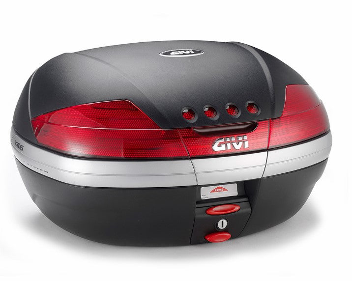 The V46 Monokey Case is a large robust top case that is perfect for storing a helmet or two when you arrive at your destination. The Monokey series uses a single key to secure the lid and to remove the case from the bike. The V46 latches into a Givi Monokey top case plate which is typically bike specific and is sold separately.