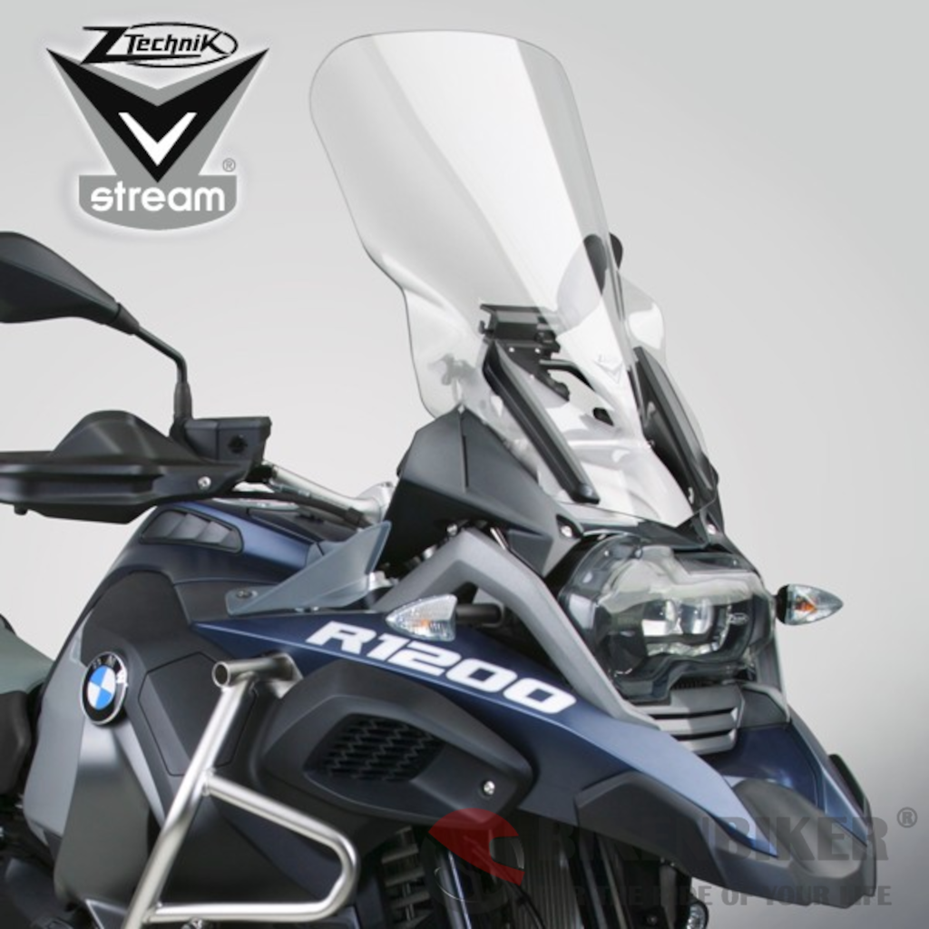 ZTechnik's VStream® Windscreens for the BMW R1200GS/LC come in three sizes. The Z2485 Dark Tint and Z2486 Clear Sport screens are reshaped in VStream's distinctive contour but similar in height to the OEM windscreen. The Z2487 Touring VStream is wider and taller than stock for superb touring performance. The Z2488 Touring Deluxe is for maximum wind protection for the serious long distance rider.