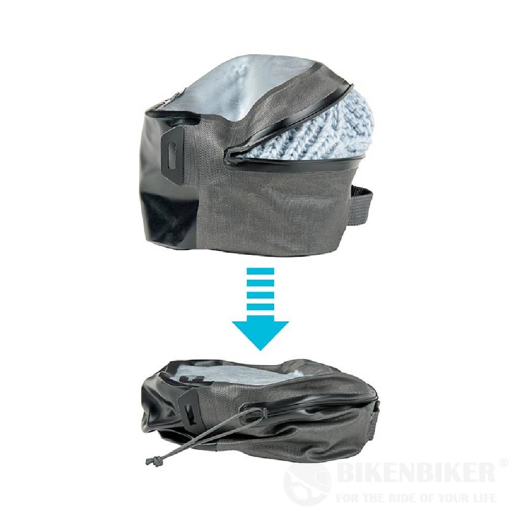Correct use: To close the TRU Zip zipper, move slider slowly and pull firmly to lock into zipper end-stop. If slider is not fully closed, zipper will not seal as intended. Test the RunOff bag for waterproofness periodically by submerging after sealing the TRU Zip zipper. Do not use if bubbles escape the bag during testing.