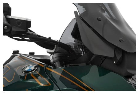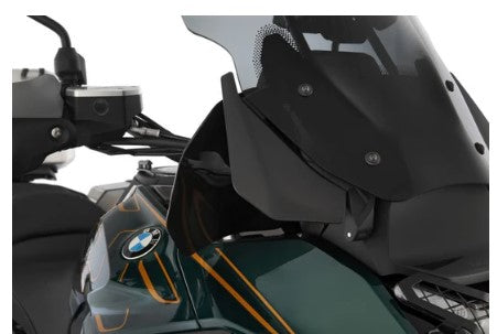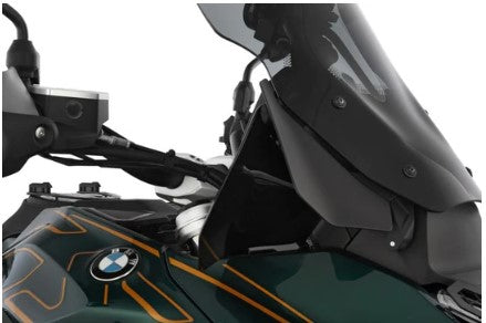 These wind deflectors significantly increase riding comfort and support a relaxed riding style – not just on long journeys. Both serve riding safety. The deflectors are efficient, aerodynamically integrated additions to the original screen or our windshields MARATHON and TOURING SPORT developed for the R 1300 GS. The wind deflectors are arranged on the right and left in the lower area of the screen. They direct the wind flow so that turbulence can be noticeably dampened, reduced, or completely eliminated.