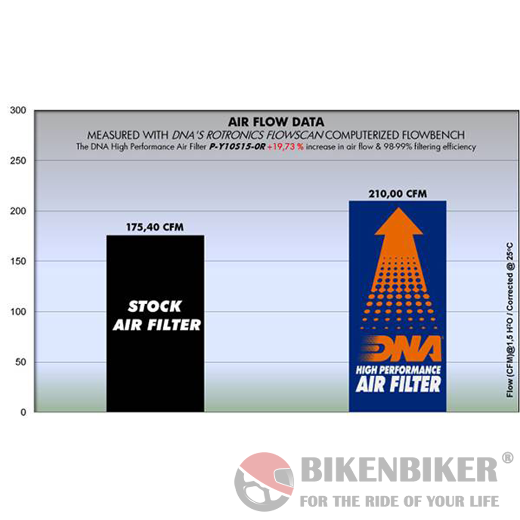 - The flow of this DNA Fcd filter is very high, 19.73% more than the YAMAHA stock paper filter!